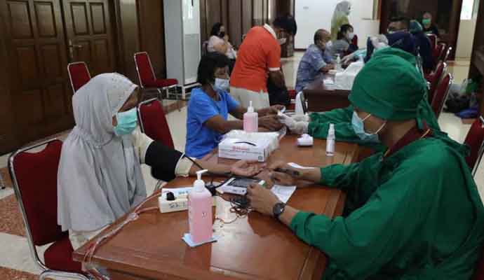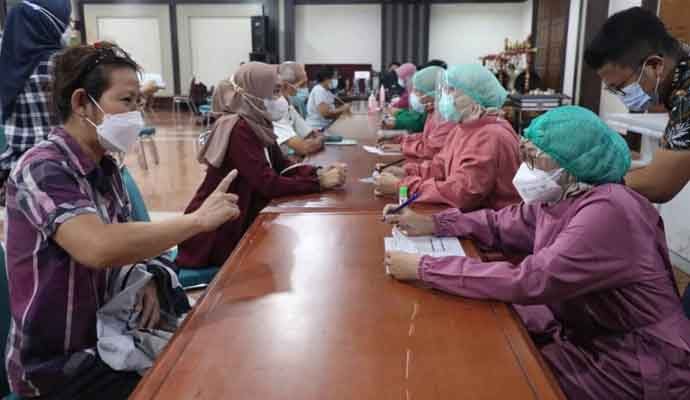 INILAHONLINE.COM, SEMARANG – Warga antusias mengikuti program vaksinasi di Gedung Ghradika Bakti Praja, yang diinisiasi Pemprov Jateng, Selasa (8/6/2021). Program ini diprioritaskan bagi lansia berumur 50 tahun.