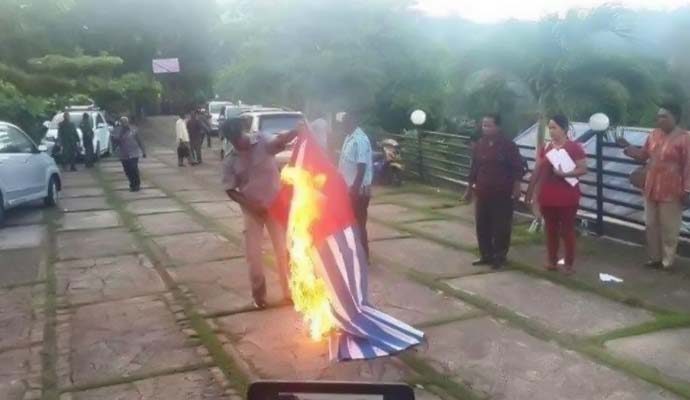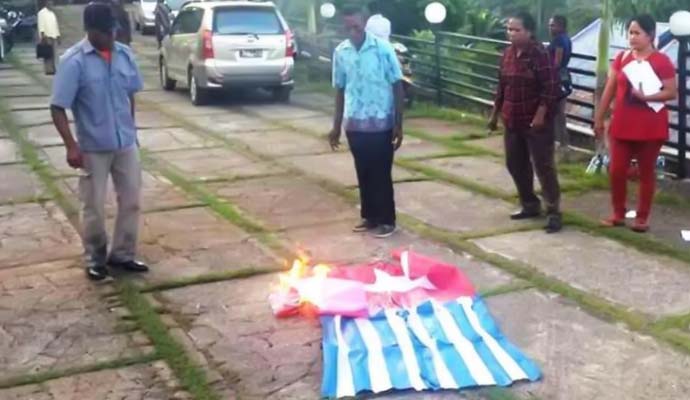 Masyarakat Wamena menggambarkan peringatan hari lahirnya Pancasila dengan membakar bendera Bintang Kejora dan Komite Nasional Papua Barat (KNPB)
