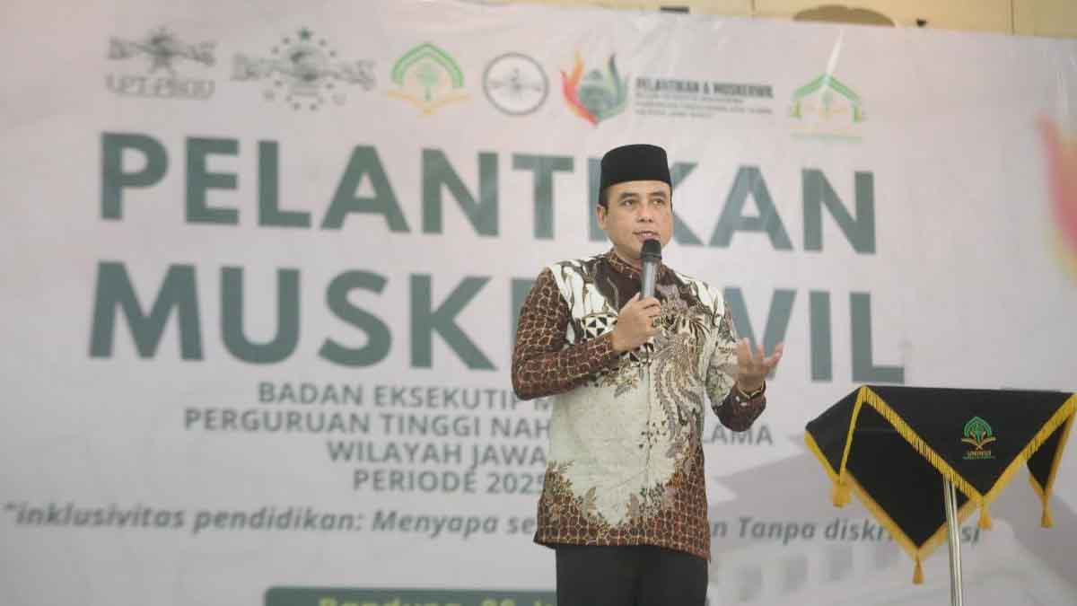 Hal ini disampaikannya saat menjadi Keynote Speaker dalam Pelantikan dan Musyawarah Kerja Wilayah (Muskerwil) Badan Eksekutif Mahasiswa Perguruan Tinggi Nahdlatul Ulama Wilayah Jawa Barat periode 2025–2027.