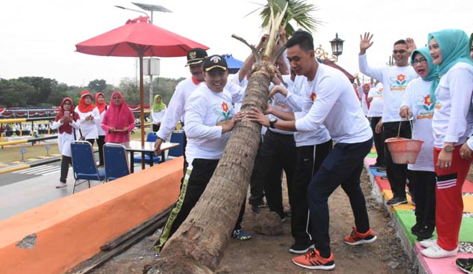 Dandim 0803/Madiun Letkol Czi Nur Alam Sucipto, S.Sos menghadiri acara Senam bersama Lansia Se Kota Madiun dan Penanaman Sejuta Bunga dengan tema “Sosialisasi Mewujudkan Madiun Kota Sejuta bunga” yang diselenggarakan oleh Pemerintah Kota Madiun, bertempat di Taman Lalu Lintas Bantaran Kali Madiun jl. A. Yani Kota Madiun, Jumat (19/07/2019)