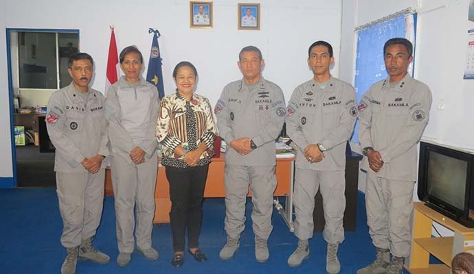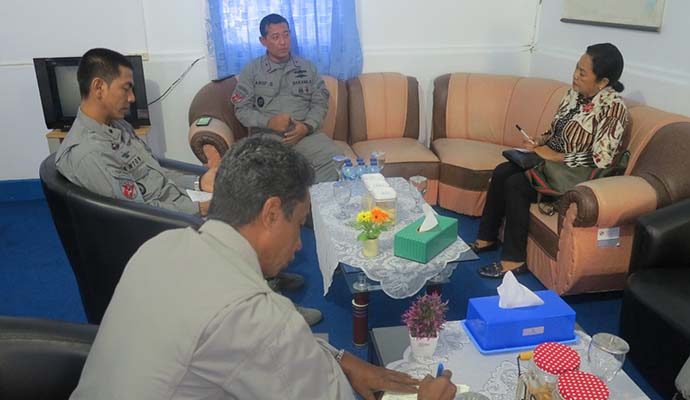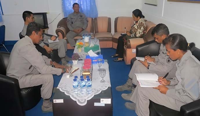 Kepala Kantor Kamla Zona Maritim Timur Laksamana Pertama Bakamla Arif Sumartono, S.Sos., M.Si.(Han) menerima kunjungan dari Kepala Bagian Kerja Sama Lintas Negara Biro Perbatasan Provinsi Maluku Etha Unawekla, SH., MH. di Kantor Kamla Zona Maritim Timur Jl. Ina Tuni, No. 1 Karpan Ambon Kec. Sirimau, Kamis (27/02/2020).